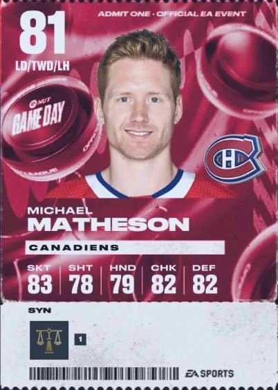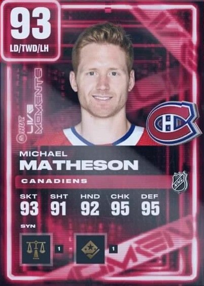 Power Forward +2 Balance, +2 Hand-Eye, +3 Puck Control, +2 Strength, +1 Wrist Shot Accuracy 6